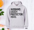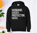 Fathers Day Hoodie, Husband, Daddy, Protector, Hero Hoodie. UNISEX